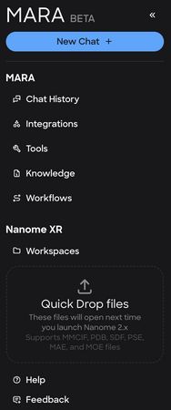 The Quick Drop area allows you to easily upload structures and session files into a Nanome v2 workspace.
