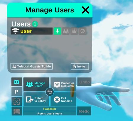 Manage users by giving them the presenter privilege or teleporting them.
