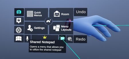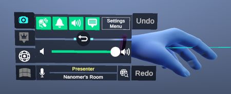 Wrist menu contains access to features independent from the content of the workspace such as quick menu access, room management.
