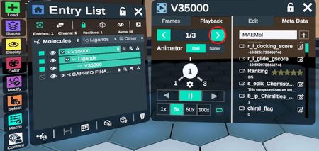 Poses of the same ligand appear as a single entry that contains several frames. You can change frames by clicking on the advanced menu here: