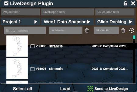 This plugin allows you to load molecular data from LiveDesign or send ligand poses to a LiveReport.