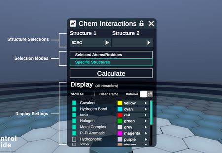 The Chemical Interactions plugin visualizes ligand-receptor and protein-protein interactions. It utilizes arpeggio for calculating interactions.