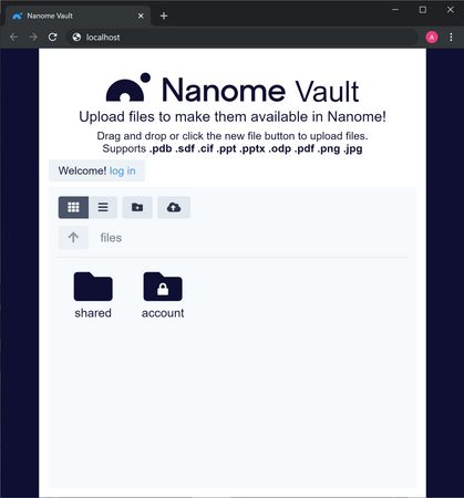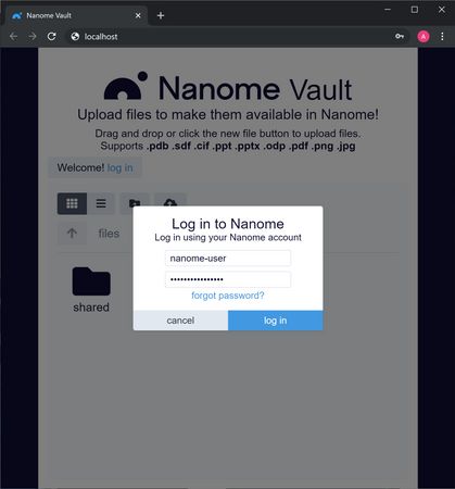 When accessing Vault from the web browser (at https://vault.nanome.ai), it will prompt you to login using your Nanome credentials.
